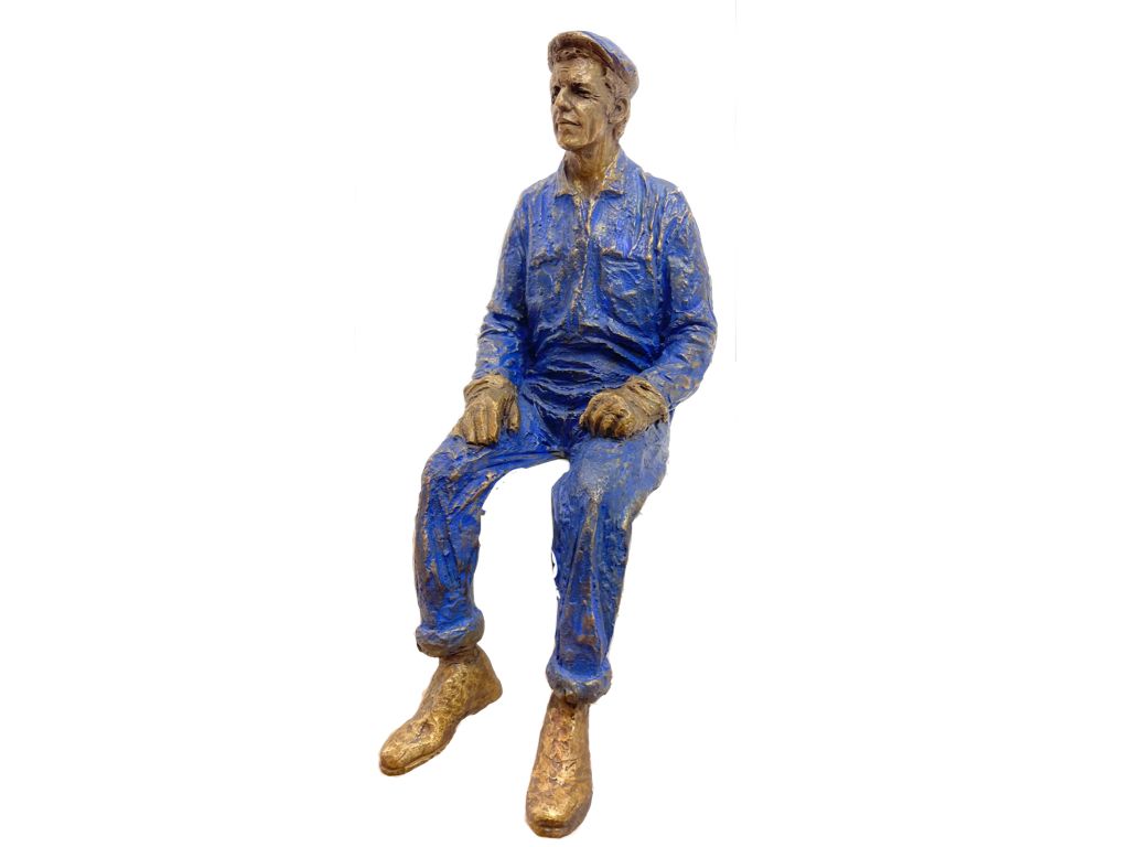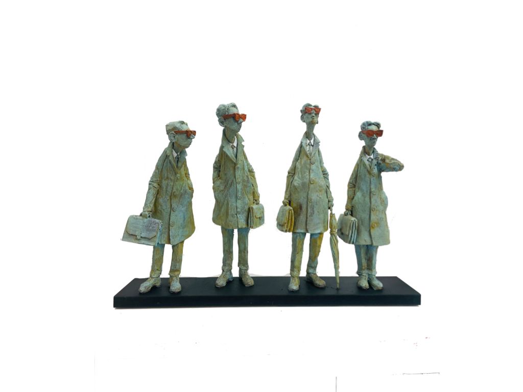 Terre cuite. Avec de gauche à droite : LE DÉJEUNER A L'ATELIER - TECHNO - ÉTINCELLE - SALOPETTE
